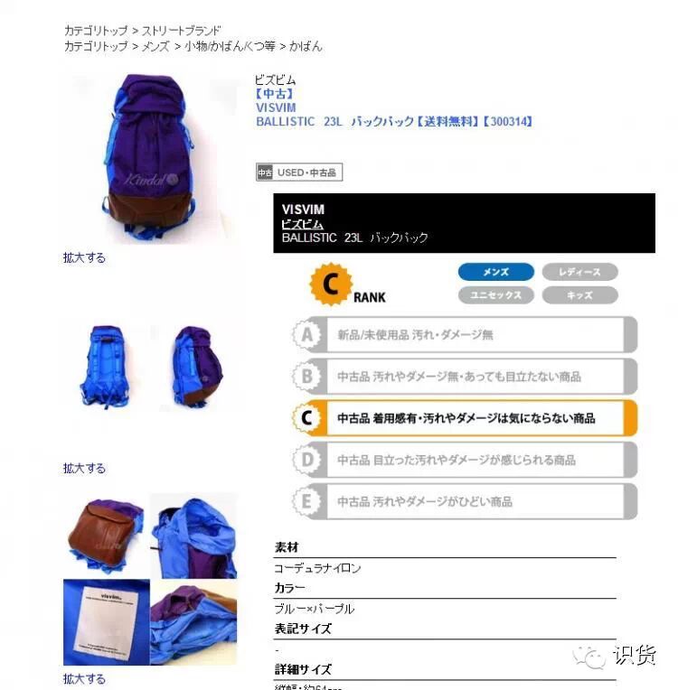 VISVIM BALLISTIC每年都会出新款,山下智久在日剧中背的是老款,识货君在日本雅虎/乐天,台湾雅虎,ebay各种搜索,基本没有全新的,2手都非常少,最后只得放弃,目前市面较多的是VISVIM BALLISTIC 20L 14SS