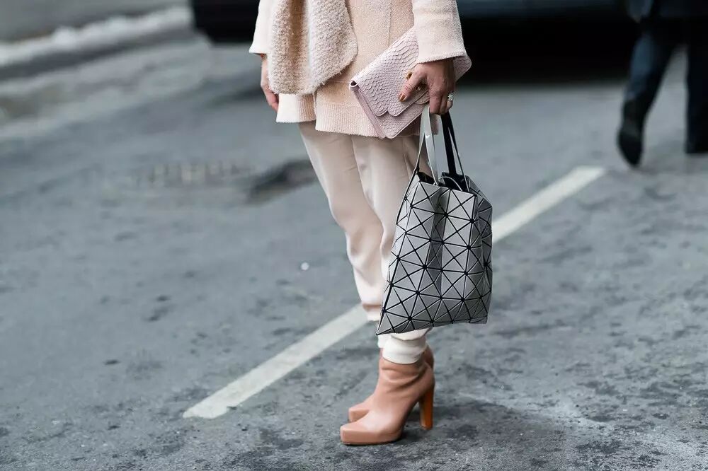 添加金属质感的包包都具有时尚和前卫性在,更何况是创意十足的包包加入金属元素更显时髦。带有几何设计的包包把手,或者是特大回纹针款式、粗狂的链条等特殊材质,都是全身打扮的亮点。