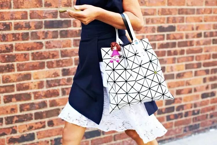 最后说说这款大家都知道的包包,最初的第一印象是在路边摊上见过(那是翻版,没有真的那么柔软!),后来因为好奇所以上网搜了一下,原来这个几何形拼凑的包包原为日本设计大师三宅一生Issey Miyake旗下副线Pleats Please Issey Miyake系列的配件单品,因为一推出就大受欢迎,所以在2010年独立成配件品牌 BAO BAO ISSEY MIYAKE ,无论是日本当地或欧美的街头上都可以经常看见它的踪影。