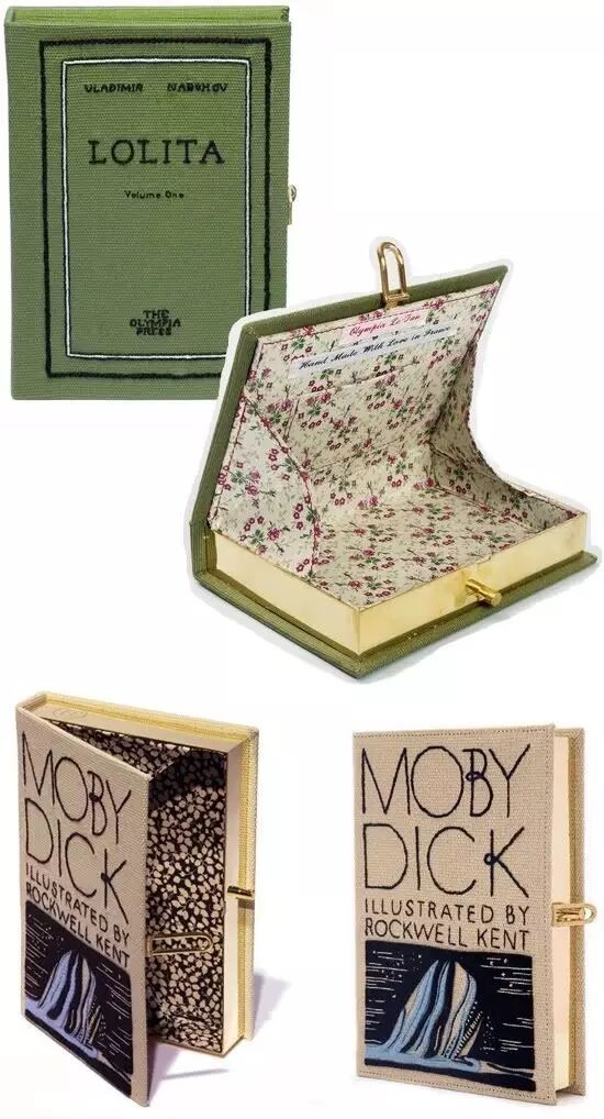以世界名著到时髦读物为灵感设计出最具有代表性作品书本手拿包为名,每一季度都围绕着一个主题来定位色彩风格,但每一季都使用不同布料、刺绣、贴布等材料,对经典图书封面进行还原并加入更跳跃的戏剧效果。