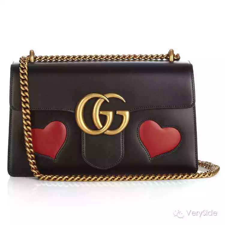 古驰2016早秋系列心形图案链条单肩包(黑色)
