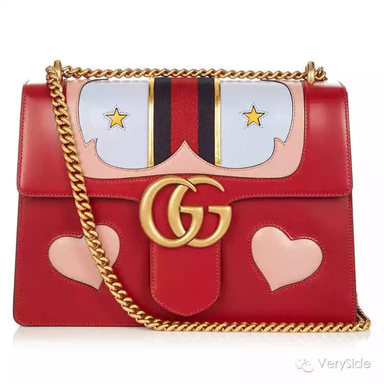 古驰2016早秋系列星星与心形图案链条单肩包(红色)