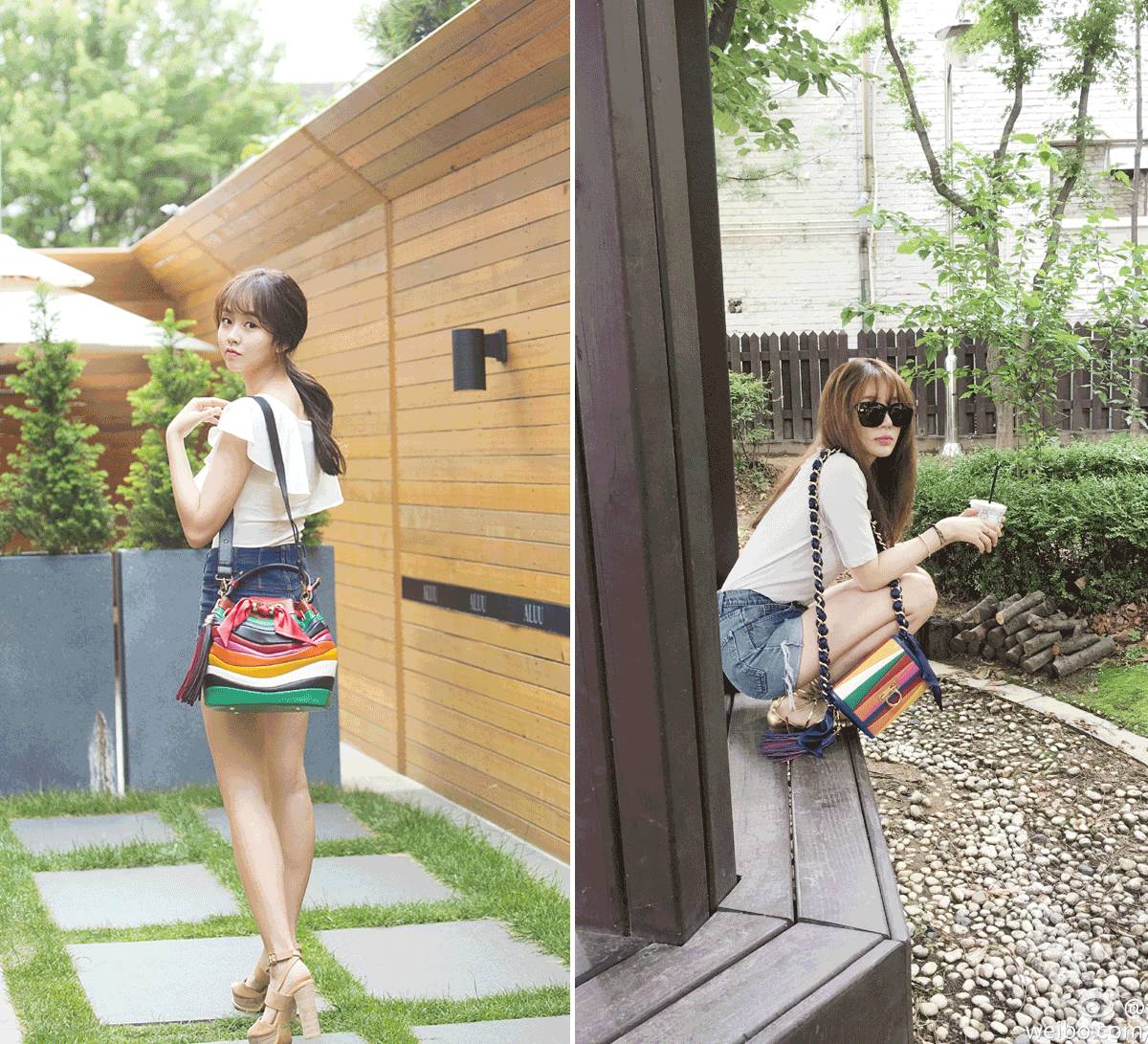 Ferragamo今年还推出了Sara Battaglia系列彩虹包包,金所炫和尹恩惠都有背,果然很适合娇小甜美的亚洲妹妹们~