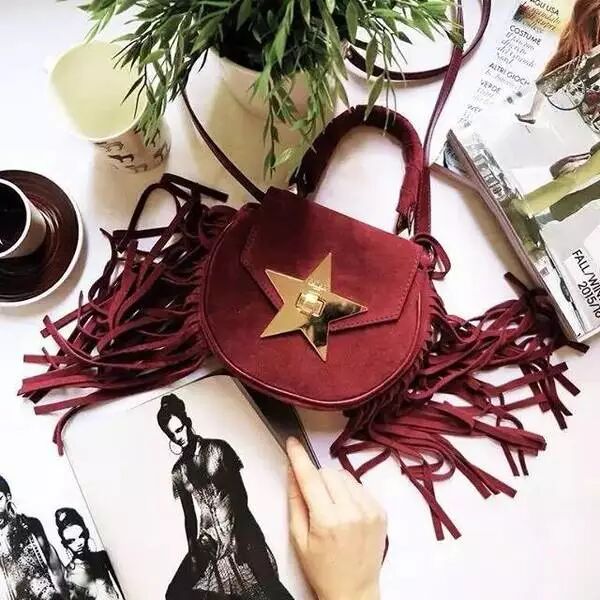 这个包包有一款是流苏装饰,那些喜欢流苏又不想穿到身上的姑娘的福利喽。看起来不会西部狂野风,不羁中带有积分秀气柔美。辨识度很高。