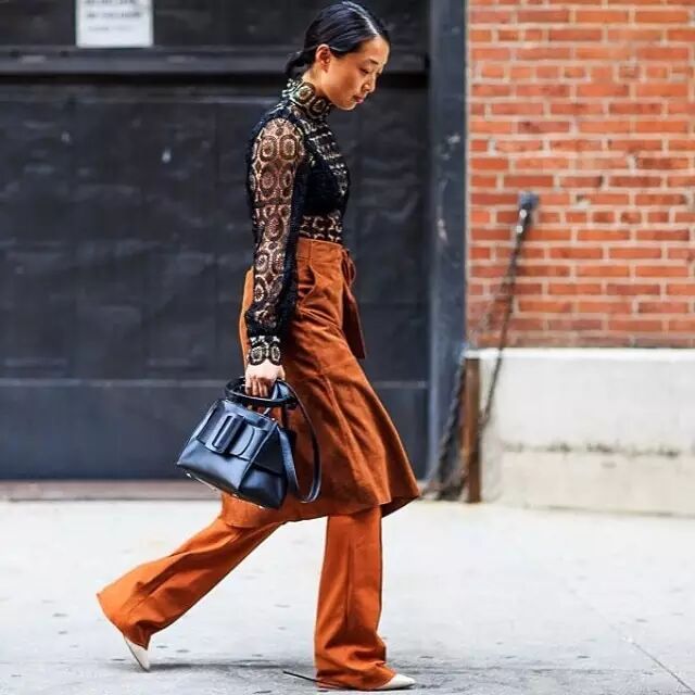 连亚裔时尚博主 Margaret Zhang 带着它走进了时装周,这一身黑上衣配土色系造型,手提Boyy 包包,直接时尚极致,即使包包用的不是黑色也不显单调。