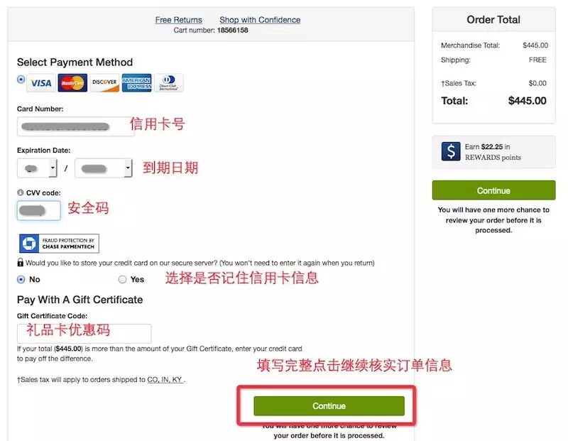 5、填写信用卡信息,填写完整之后点击进入最后合适阶段,核实无误后付款就好啦!至此,坐等邮件和美包就行了!
