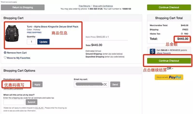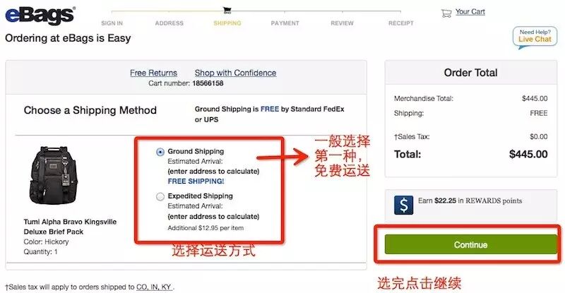 eBags官网支持国卡+转运,账单地址填写天天海淘提供给您的DE仓库地址(免消费税哦)即可,eBags官网包包品类全,价格低,经常有活动,海淘包包不容错过!接下来小天就带大家来看一下,如何才能在eBags官网顺利下单shopping!