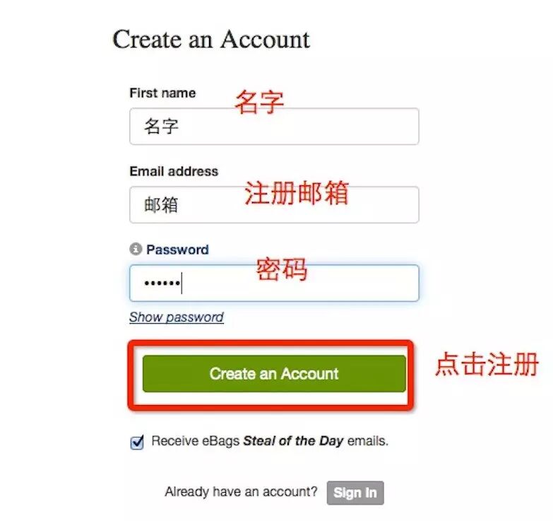 1、进入官网首页,点击右上角“Creat An Account”进入注册页面