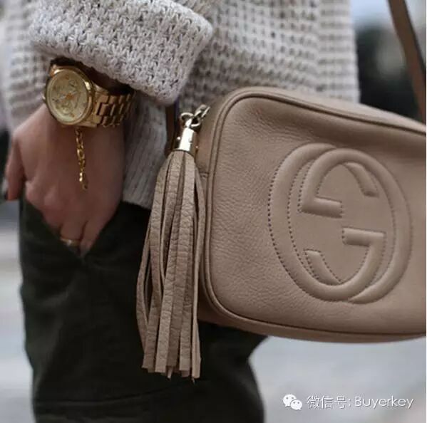 对于不会搭配的菇凉们,挑选包包时,在兼顾全身主色系的同时,辅助的饰品如果都是同一色系的让人觉得穿的很精致,很用心。比如这款GUCCI Soho 牛皮包,和凉鞋的绑带相呼应,整体感觉就是棒棒哒。