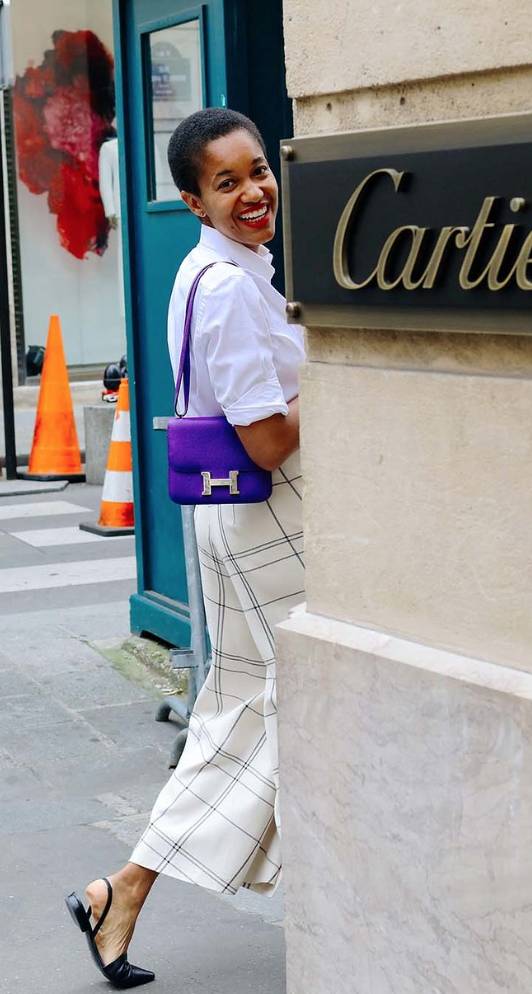 街拍摄影师Tamu McPherson 身上的这款鸢尾紫,瞬间看让人看呆了。可不可以不要这么美?!包小姐好想直接从她身上扒下来!